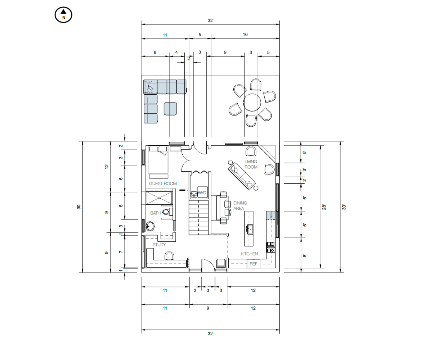 Comprehensive design service where we work with you on all aspects of the design of your home, from design concept to plans, to construction through communicating with your contractor, and furnishings and decor placement.